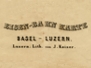 Karte der Bahnstrecke Luzern-Basel mit Lithografien von Basel, Vierwaldstättersee und einer Ansicht des 1858 fertiggestellten Hauenstein-Tunnels.